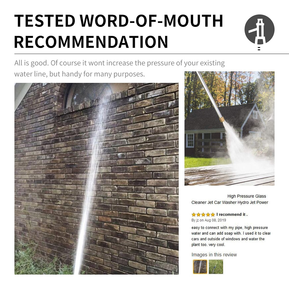 Was alles rondom het huis, inclusief het terras, auto's, grasmaaier, garagedeuren, betonnen trottoirs, terrasdekken, BBQ-grills en nog veel meer met het draagbare hogedruk waterpistool! Dankzij het innovatieve ontwerp verhoogt deze nieuwe reiniger de uitlaatdruk van je waterslang aanzienlijk tot 8 keer. Geniet thuis van professionele resultaten in slechts enkele minuten!
