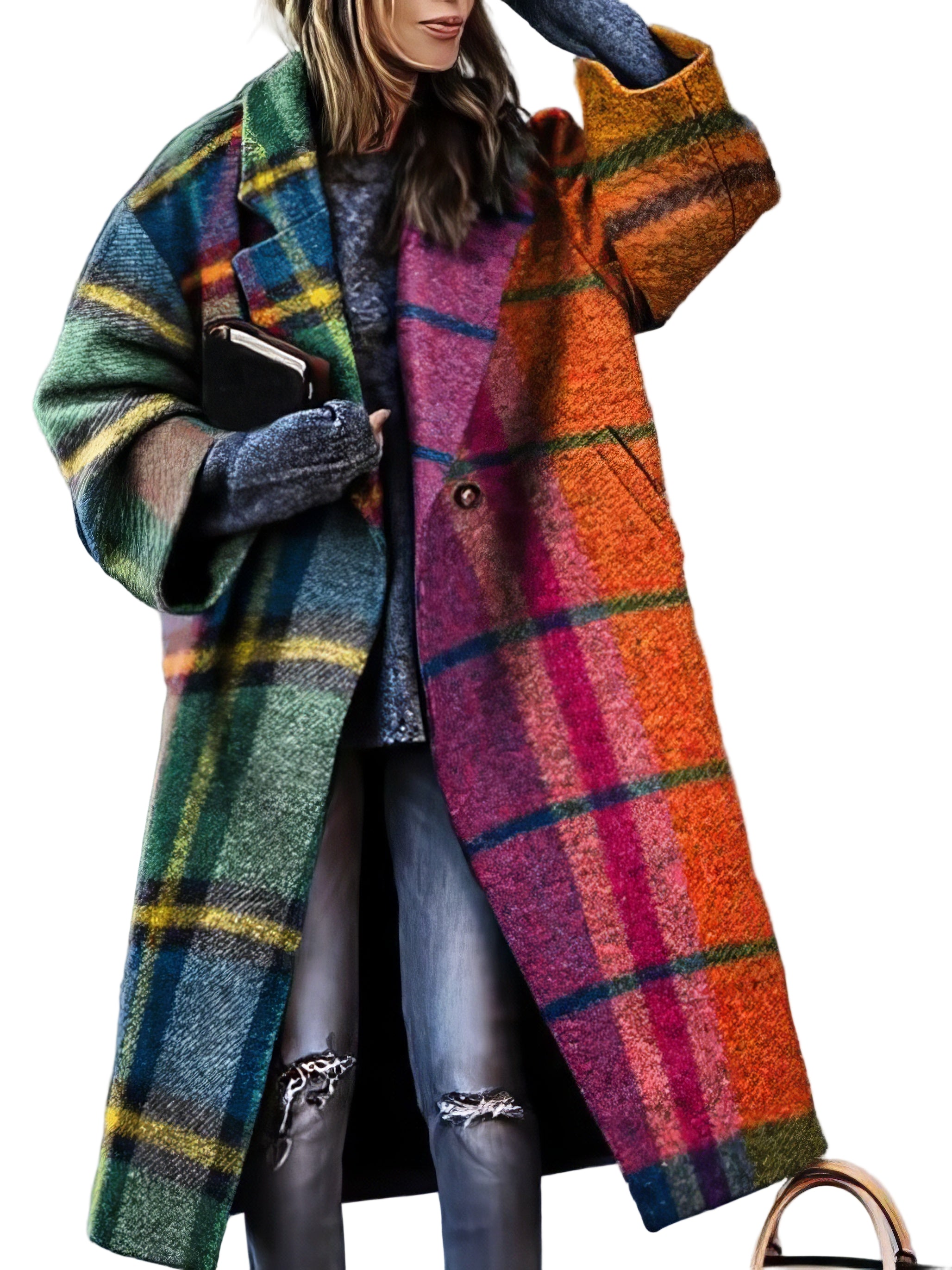 De langarm revers mantel heeft een figuuraccentuerende snit die een flatterende silhouet creëert. Het langere ontwerp biedt extra warmte en stijl, terwijl de klassieke details een verfijnde uitstraling geven. Deze mantel is veelzijdig en kan gemakkelijk worden gecombineerd met zowel elegante als casual kleding.