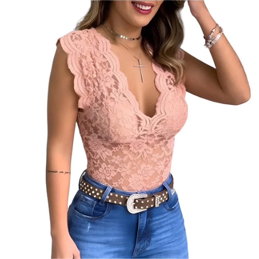 Deze top is ontworpen met een verleidelijke V-hals en delicate kant, waardoor het perfect is voor zowel casual als chique gelegenheden. De slanke pasvorm accentueert je figuur en zorgt voor een flatterende look.