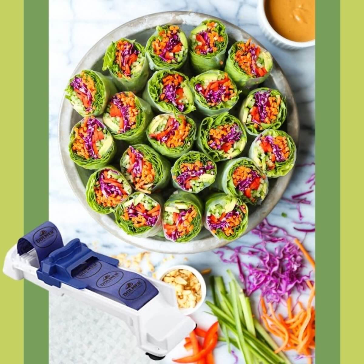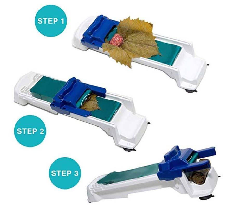 Nu kan je je eigen gevulde wijnbladeren of andere rollen maken met deze Magische Vleesgroenten Rol. De roltang maakt het je gemakkelijk met een eenvoudige één-beweging-bediening die zelfs door je kinderen kan worden uitgevoerd. Leg gewoon het blad neer, vul het met vlees of een andere verrukkelijke vulling en beweeg de schuif naar voren, om perfecte rollen te maken in enkele seconden.