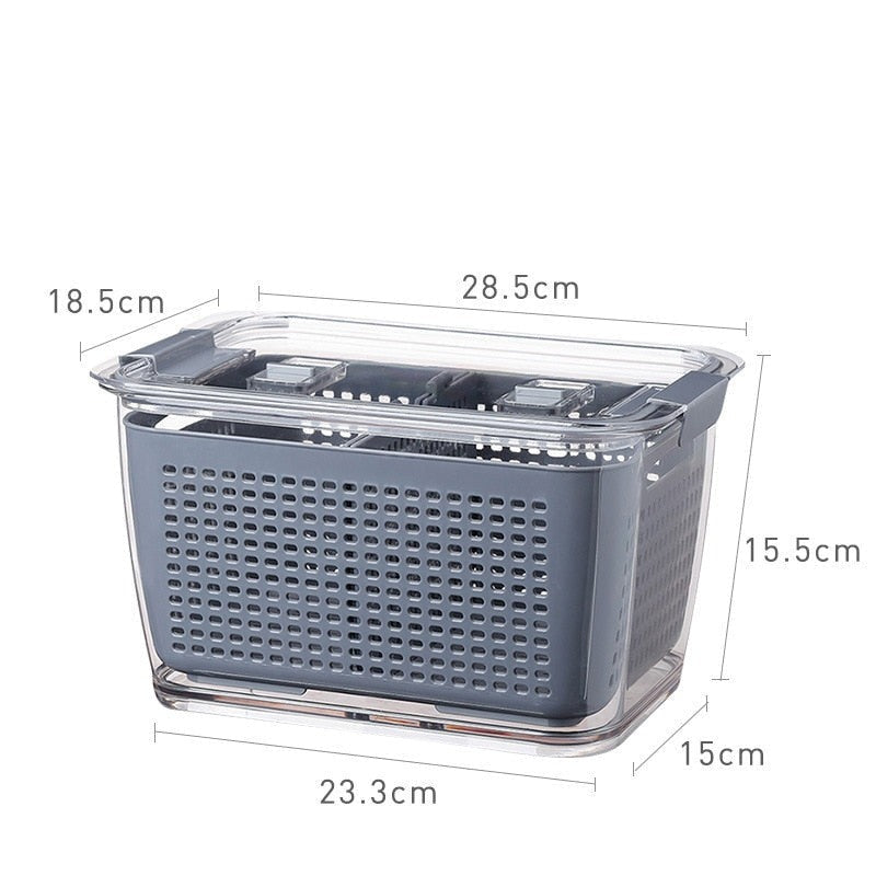 Deze multifunctionele containers zijn perfect voor het wassen en afspoelen van groenten en fruit, om ze vervolgens uit te laten lekken en te bewaren zodat ze langer vers blijven. De uitlekbakjes kunnen ook worden gebruikt voor het uitlekken van pasta of iets anders dat u wilt. Ze hebben deksels met siliconen clips om de bakjes luchtdicht af te sluiten.