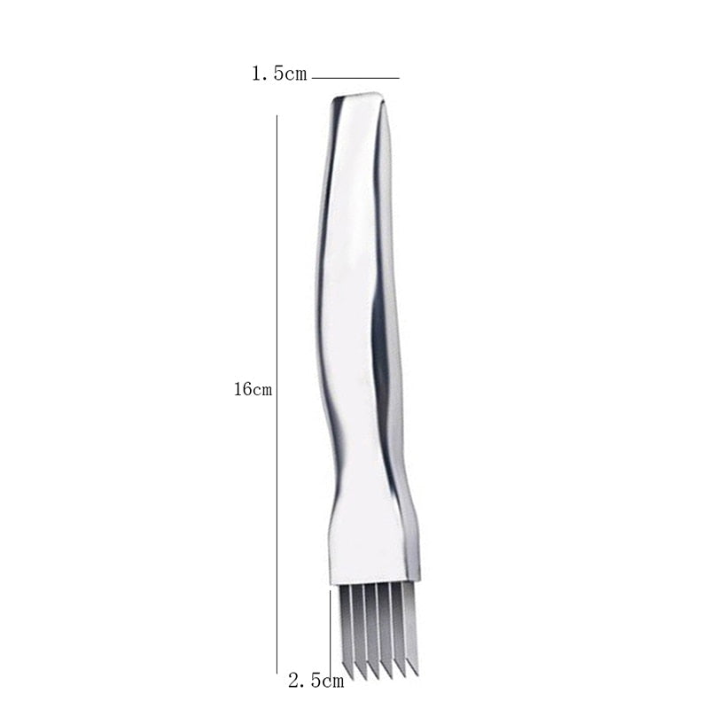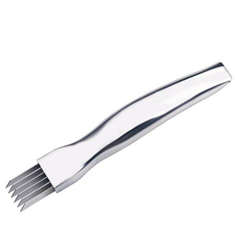 Het roestvrijstalen uienmes bespaart tijd en arbeid en is een must en het beste gereedschap voor het snijden van groene uien.