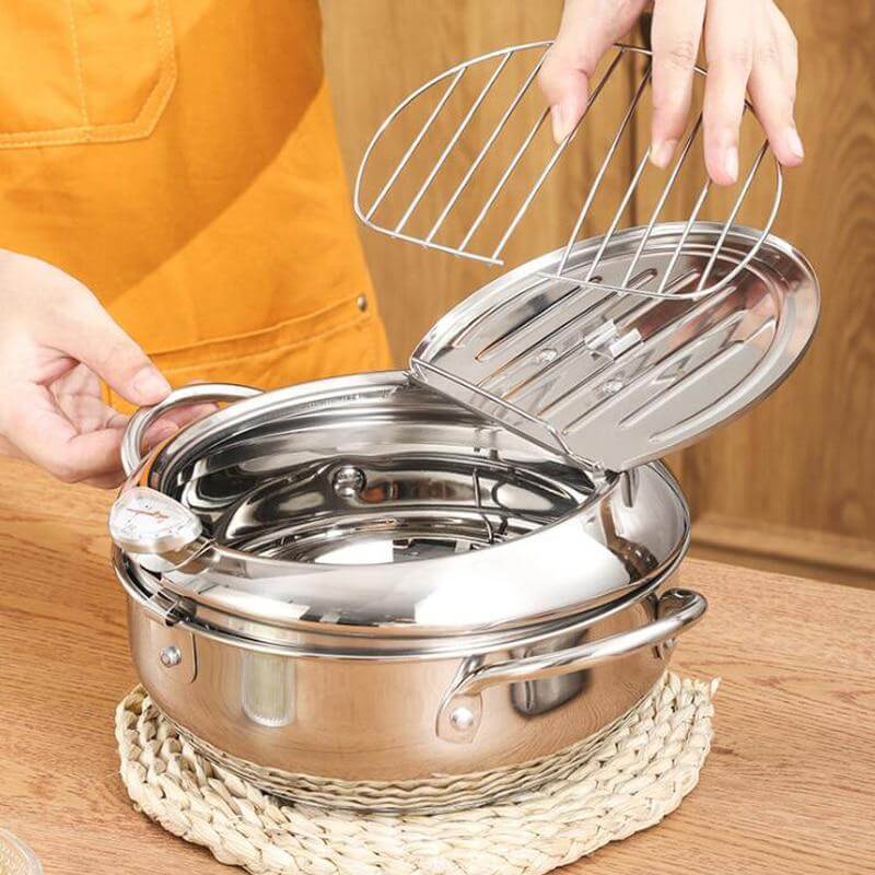 We hebben een frituurpan gemaakt voor al je kookbehoeften! Deze frituurpan bakt alles tot in de perfectie geen spetters gegarandeerd, met zijn compacte maar diepe ontwerp is overal een goede plek om te frituren!