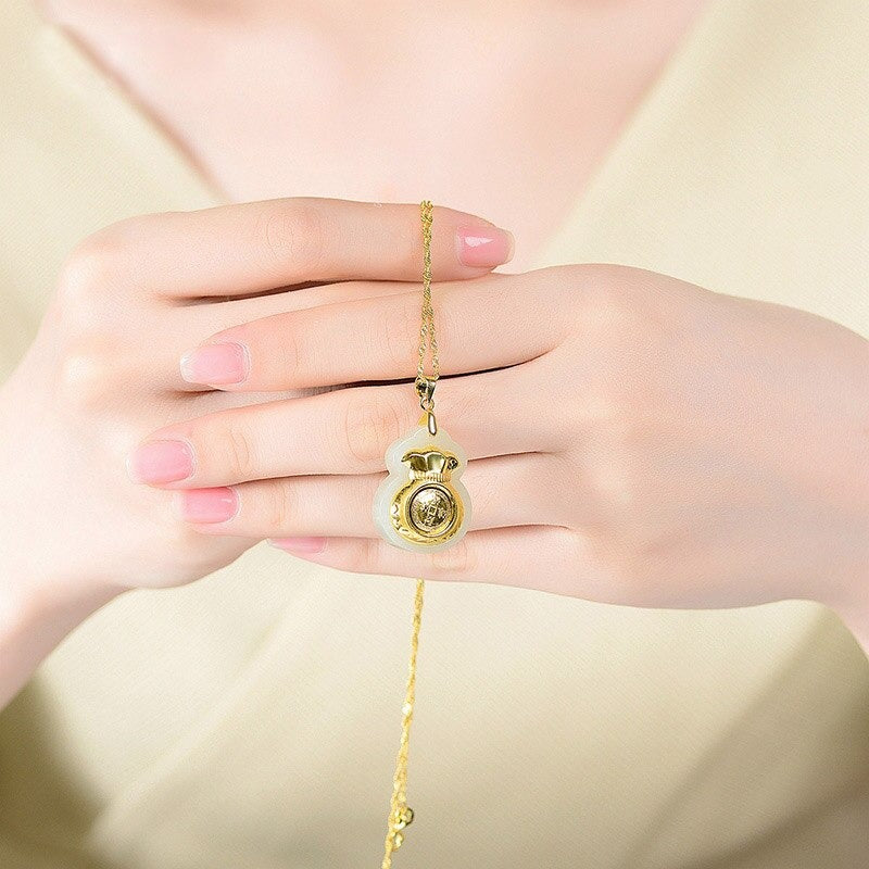 Draag dit amulet dagelijks op je lichaam om al zijn gelukskracht te verkrijgen! Onze Jade Geldzak Hanger is een krachtige rijkdom activator in de feng shui praktijk. Door de combinatie van de gelukbrengende geldbuidel en de wensvervullende Hetian jade, wordt van deze ketting gezegd dat hij iemand helpt zijn dromen van een overvloedig leven te verwezenlijken!