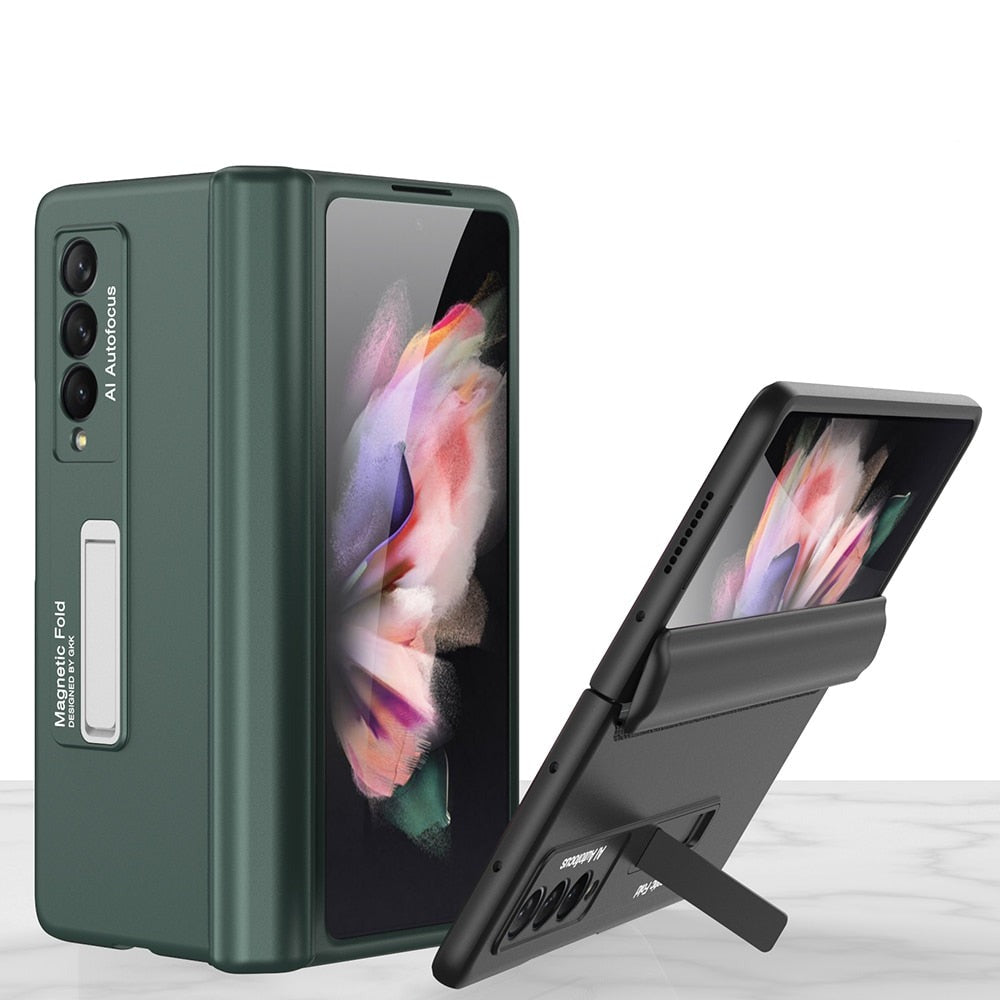 Heb je ooit meegemaakt dat je telefoon uit je hand glipt wanneer je hem buiten of in de metro gebruikt? De Hard Case Bracket Stand is speciaal ontworpen voor de Samsung Galaxy Z Fold 3. Het maakt gebruik van versterkt PC materiaal, wat het duurzaam maakt.