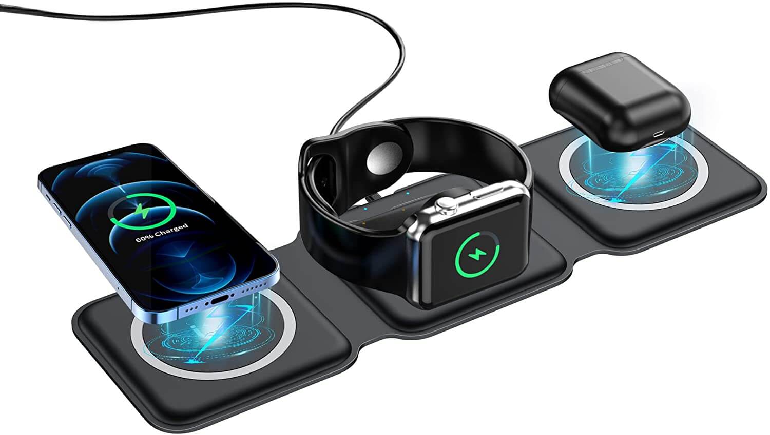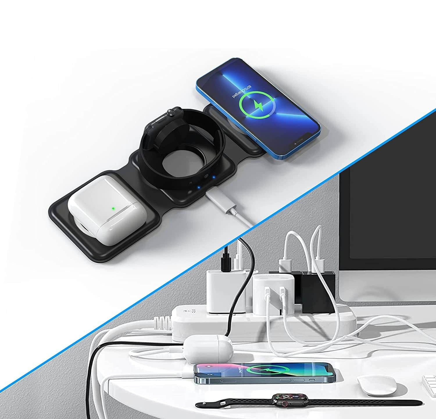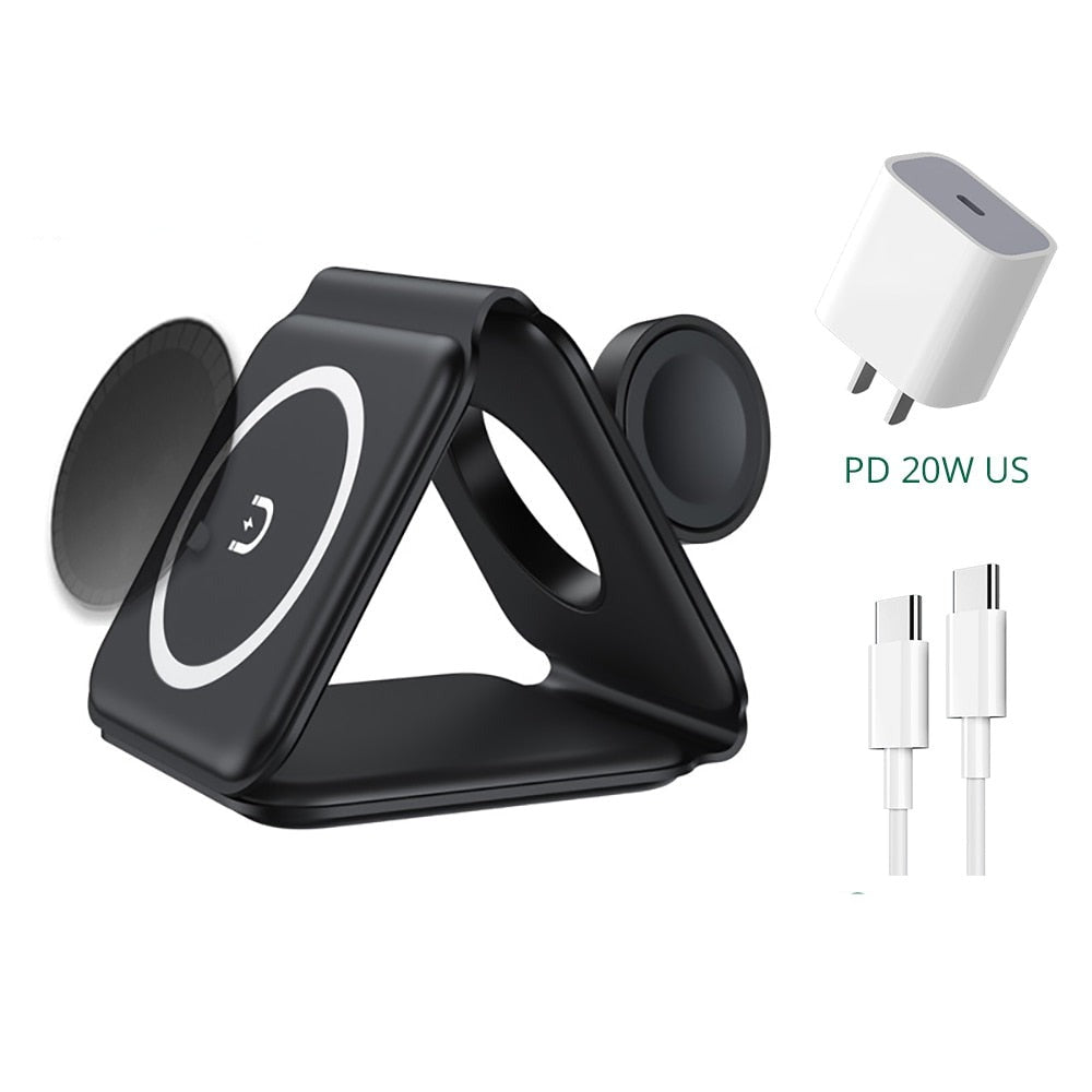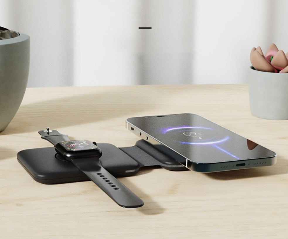 De Ultimate 3-In-1 opvouwbare magnetische draadloze oplader is de beste oplossing om uw Apple smartphone, smartwatch en oordopjes op te laden zonder het gedoe van in de knoop geraakte draden en kabels.