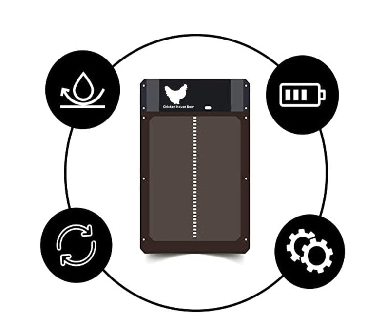 Zeg vaarwel tegen uw zorgen en slapeloze nachten met ons Automatisch Kippenhok Deurtje! Dit hulpmiddel combineert kwaliteit met gemak om u de beste optie te geven om voor uw kippen te zorgen. Met het instellen van de timer hoeft u zich nooit meer zorgen te maken over het openen of sluiten van uw hok.