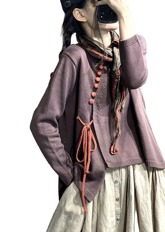 Deze stijlvolle trui biedt een perfecte combinatie van comfort en mode. Het asymmetrische ontwerp en de knopen zorgen voor een unieke uitstraling, ideaal voor de herfst.