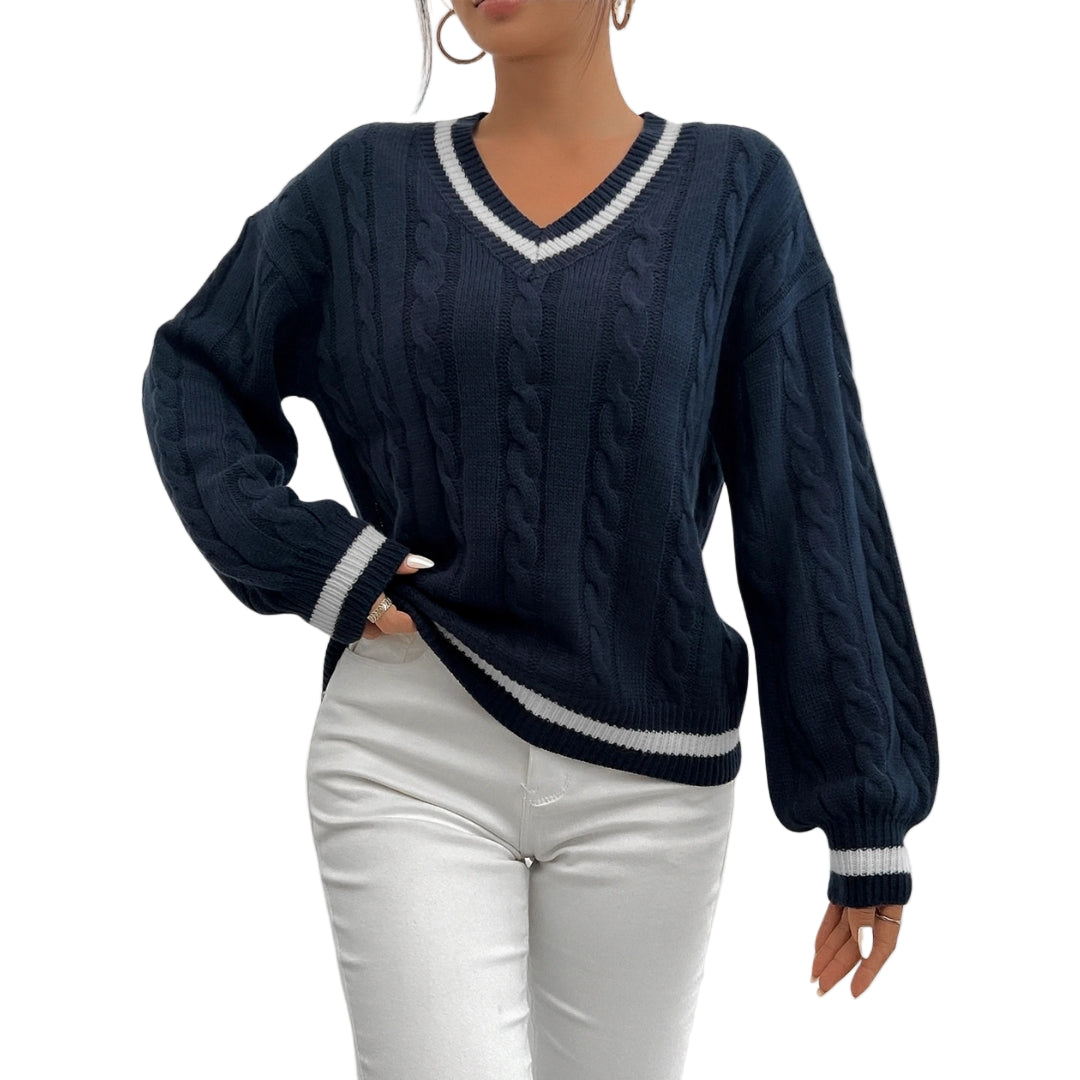 Voel je comfortabel en stijlvol in deze prachtige V-hals kabelgebreide trui. Perfect voor de winter, biedt deze trui een ontspannen pasvorm die je warm houdt op koude dagen.