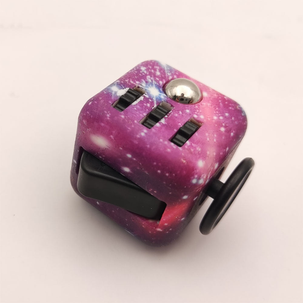 Het ontwerp van deze 6 zijdige fidget kubus is geïnspireerd op traditionele zorgstenen, hulpmiddelen die gebruikt worden om angst te verminderen wanneer er over gewreven wordt.