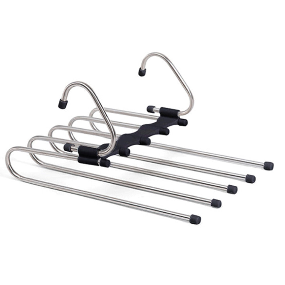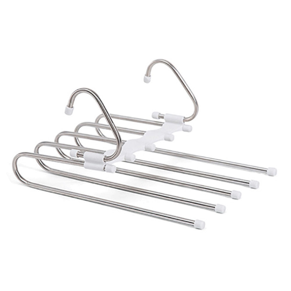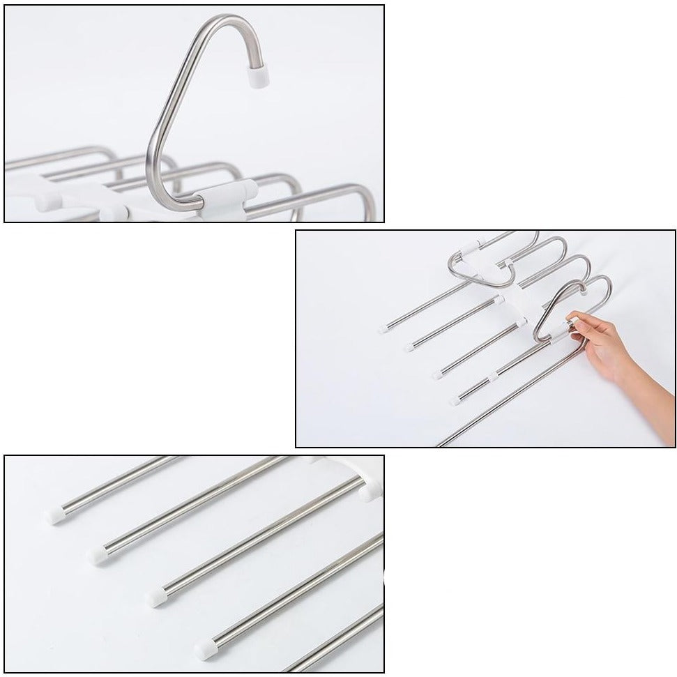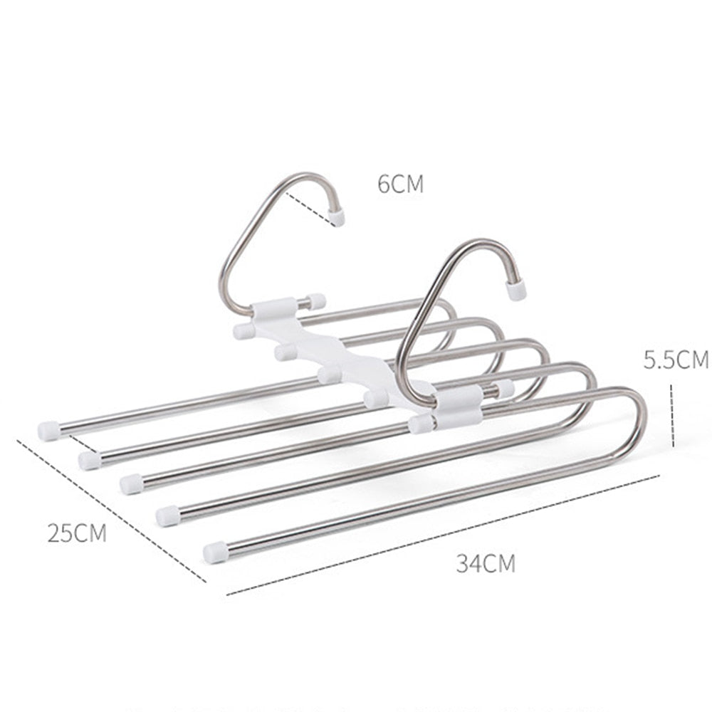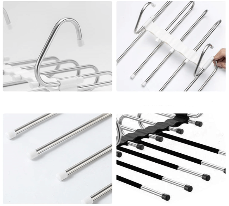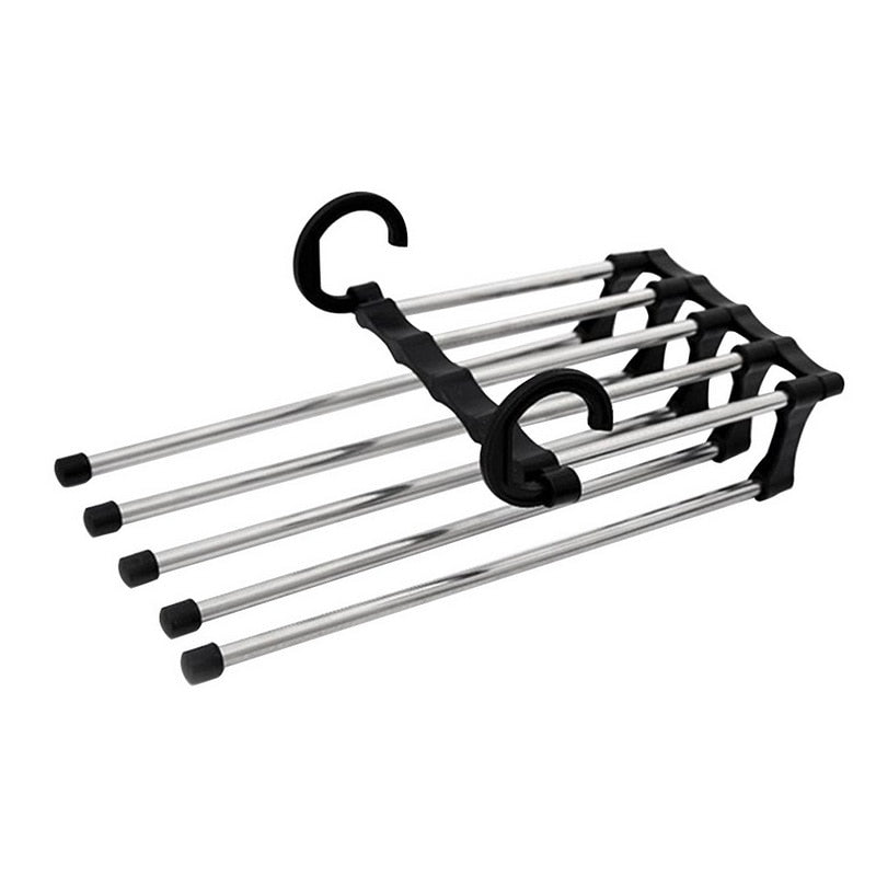 Multi-Functionele Pants Rack ontwerp houdt uw broek schoon en netjes, bespaart meer ruimte. Er zijn twee haken aan de bovenkant. U kunt twee haken gebruiken voor horizontale ophanging of alleen haken gebruiken voor verticale ophanging. Er worden vijf roestvrijstalen buizen gebruikt, die elk naar buiten kunnen worden getrokken voor eenvoudige ophanging en hergebruik. Het is perfect voor op reis of zakenreizen en kan ook worden gebruikt als droogrek.