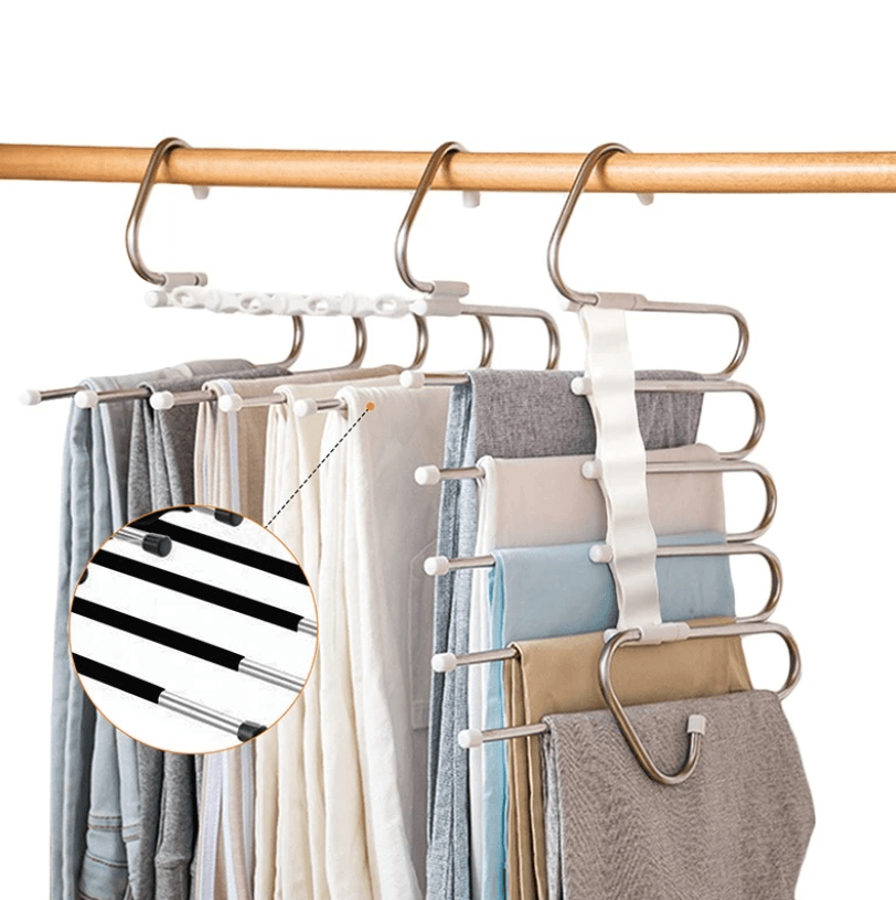 Bent u op zoek naar een hulpmiddel om uw broeken en pantalons zo op te bergen dat ze gemakkelijk toegankelijk zijn en niet kreuken en kreuken? Bewaar al uw broeken, jeans, rokken en diverse andere onderbroeken comfortabel in een kast en maak zo efficiënt mogelijk gebruik van uw ruimte met ons innovatieve multifunctionele broekenrek.