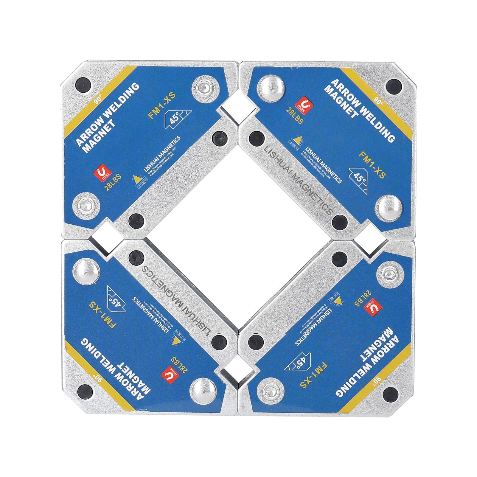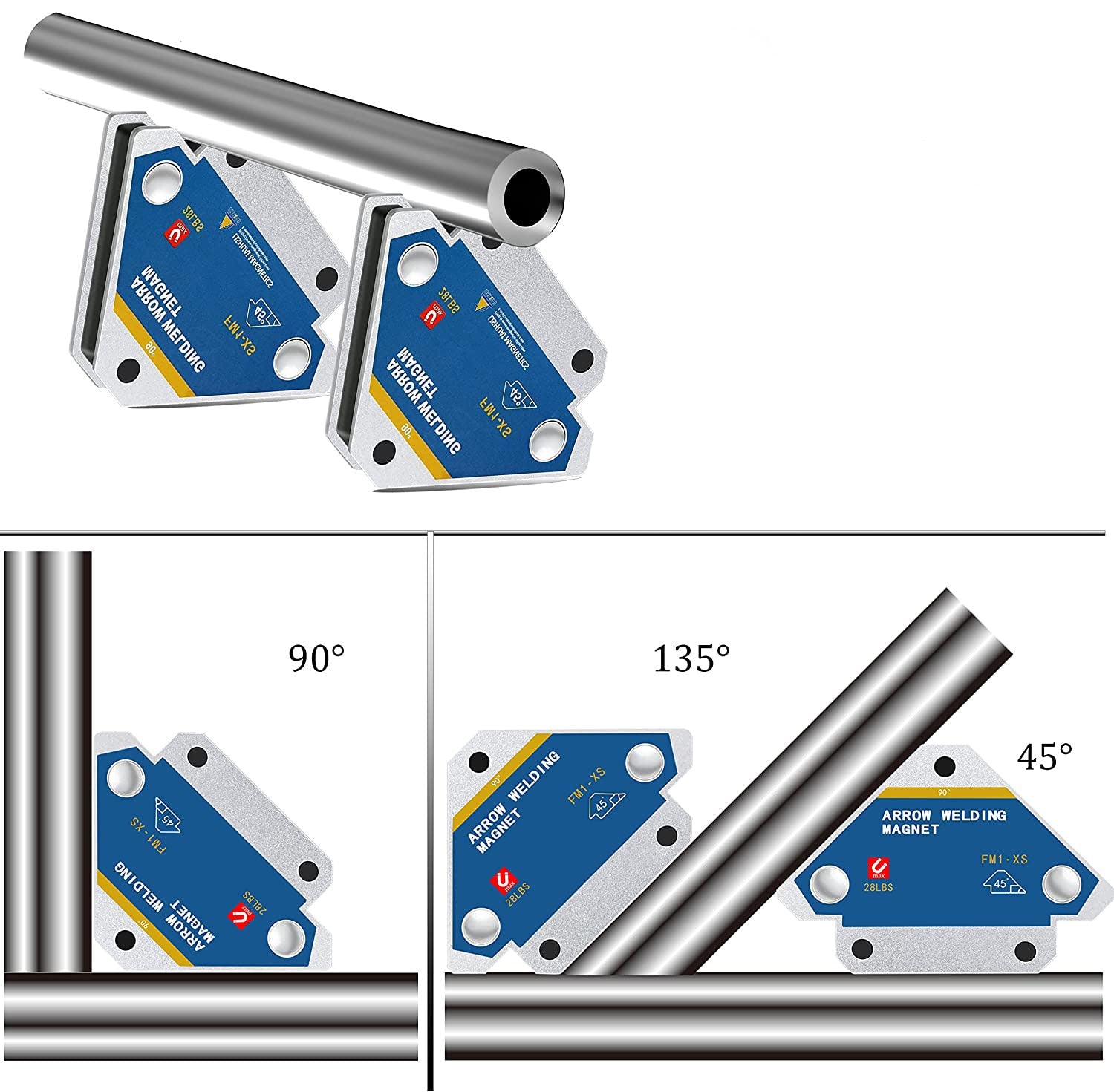 • DRIE Hoeken: De krachtige magnetische hoeklasgereedschappen met een pijlvormig ontwerp ondersteunen materiaal onder 45°, 90° en 135° voor gemakkelijke toegang en stellen u in staat om onder verschillende hoeken te werken tijdens het lassen, assemblage en markeerwerk.