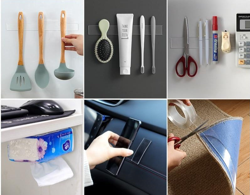Powertape kan in alle rangen en standen worden gebruikt ... U kunt het gebruiken om voorwerpen zoals autotelefoonhouders, posters, fotolijsten, pennenhouders, muurstickers, haken, klein gereedschap, kleef pads, hoesjes voor mobieltjes, enz. te repareren of in te steken. Patches, decoratieve patches, muurdecoraties en nog veel meer dat nauw met het leven verbonden is. Powertape is transparant, kan overal worden aangebracht en ziet er nog steeds fantastisch uit!